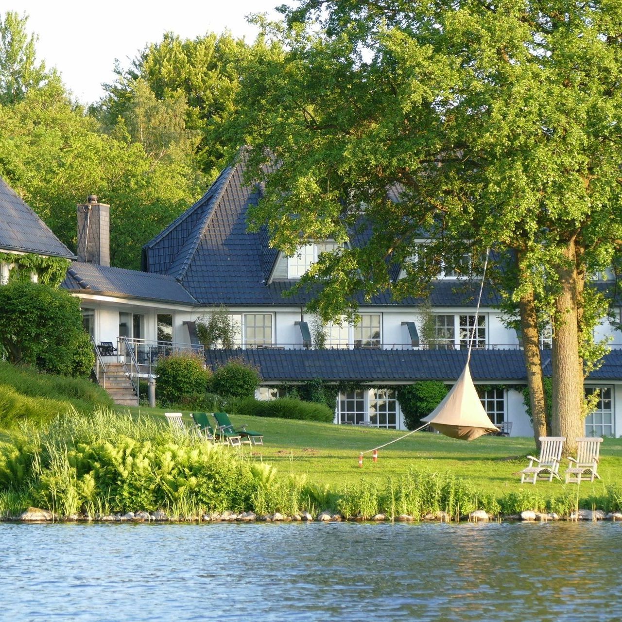 Outdoor du chillst beispielsweise in unseren Hängematten und Deck-Chairs. Über den See bewegst du dich mit unseren Kanus oder SUP-Boards. Auf unserer großen Seewiese spielst du Beachvolleyball, Pétanque oder eines unsere anderen Gartenspiele für Groß und Klein. Indoor haben wir in unserem Hotel in Schleswig-Holstein Brett- und Gesellschaftsspiele für dich bereitgestellt. Das Lounge-Sofa vor dem knisternden Kamin lädt zum Chillen ein.