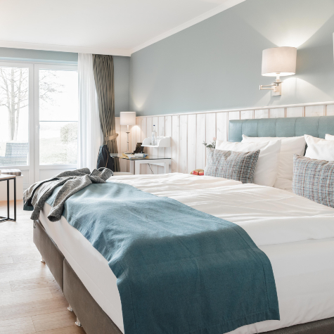 Ja, klar. In unserem Hotel in Schleswig-Holstein blickst du auf den Bistensee durch die breiten Fenster oder von der Terrasse bzw. dem Balkon. Darüber hinaus sorgen die großen Fenster, auch in unseren Zimmern mit Gartenblick, dafür, dass dein Zimmer oder die Junior-Suite von Licht durchflutet wird. Zusammen mit den hellen Holz- und Wandfarben entsteht eine warme und behagliche Atmosphäre, die viele unserer Gäste als hyggelig beschreiben.